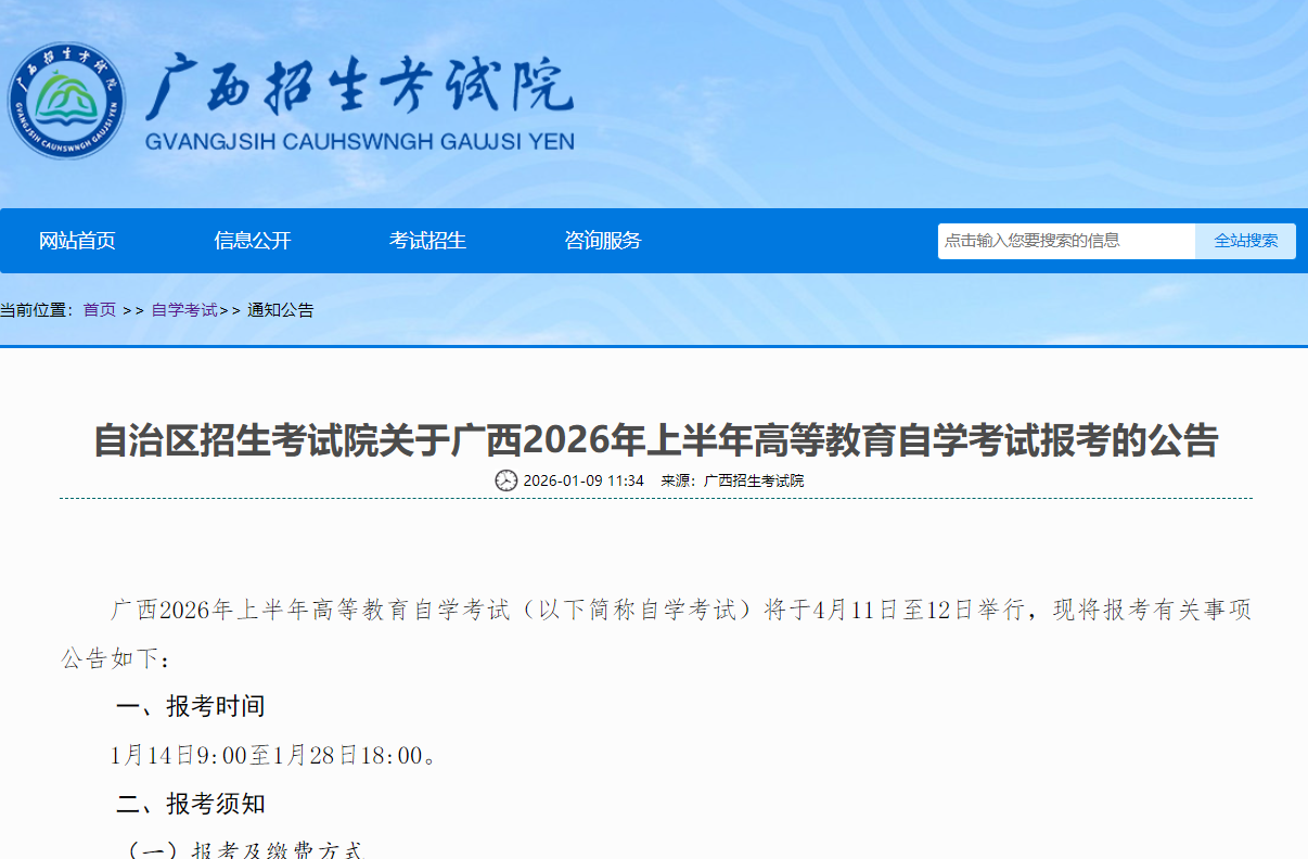 - 2026年广西自考上半年报考公告 01-12