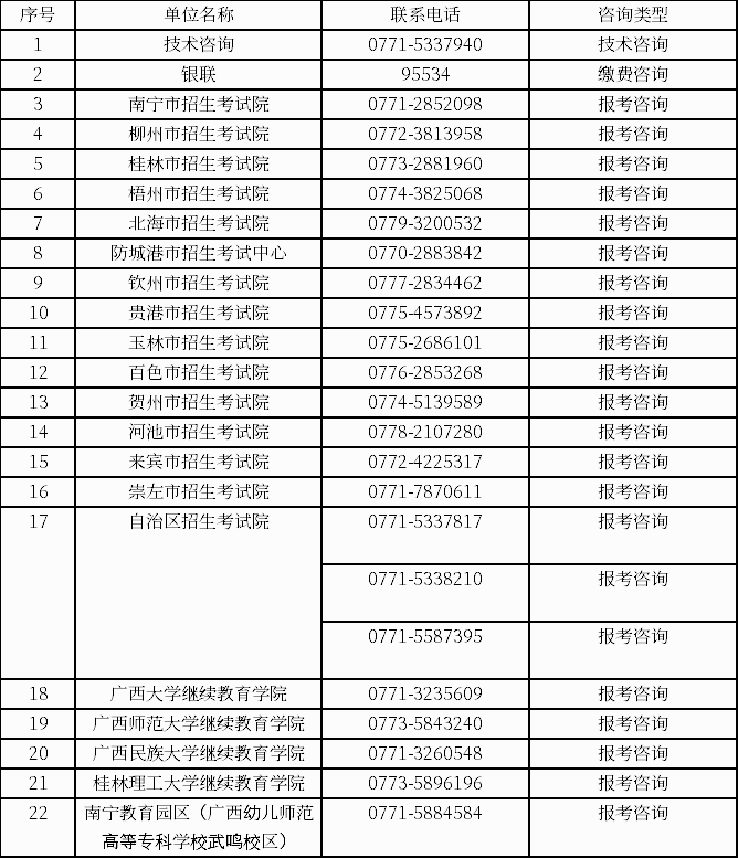 (一)报考期间咨询服务电话